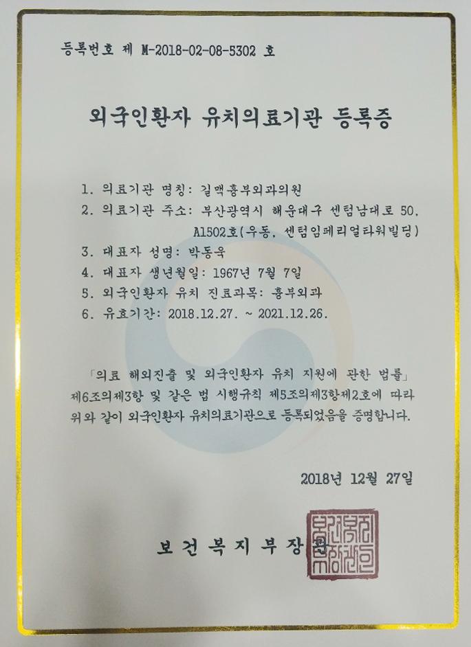 길맥흉부외과, 외국인환자 유치의료기관 등록