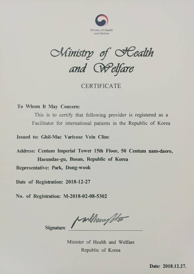 '외국인환자 유치 의료기관'으로 선정되었습니다.
