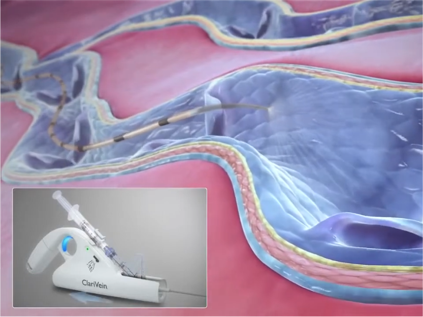 클라리베인의 주입 도구 끝에 볼이 고회전을 하면서 정맥 내벽에 물리적으로 변성을 주면 혈관이 경련을 일으켜 수축하게 됩니다. 수축된 혈관에 STS를 주입해 혈관을 폐쇄하는 방법입니다.